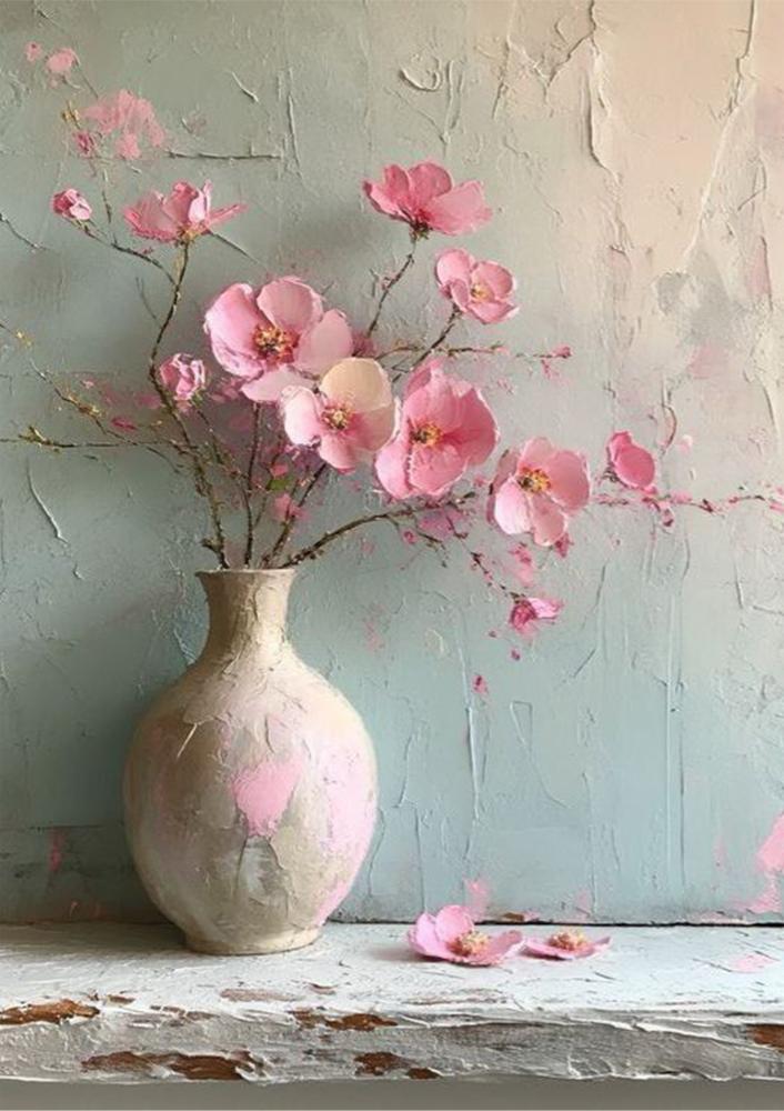 زهرة تباري بألوان نابضة بالحياة، حيث تتلاقى البتلات مع الضوء والظل بانسجام فني رائع كل تفصيلة في اللوحة تعكس جمال الطبيعة .